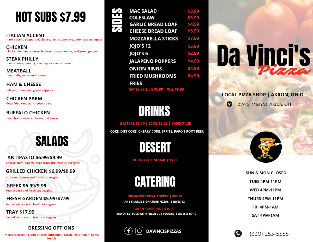 For those with a sweet tooth, the CinnaRolis and rich cheesecake promise a delightful finish to your dining experience. Customers rave about the freshness and quality of the food, with highlights like the juicy Philly cheesesteak that keeps patrons coming back for more. The inviting atmosphere and dedicated service from the owner enhance the experience, making Davinci’s - Akron a must-visit spot for anyone in the area.