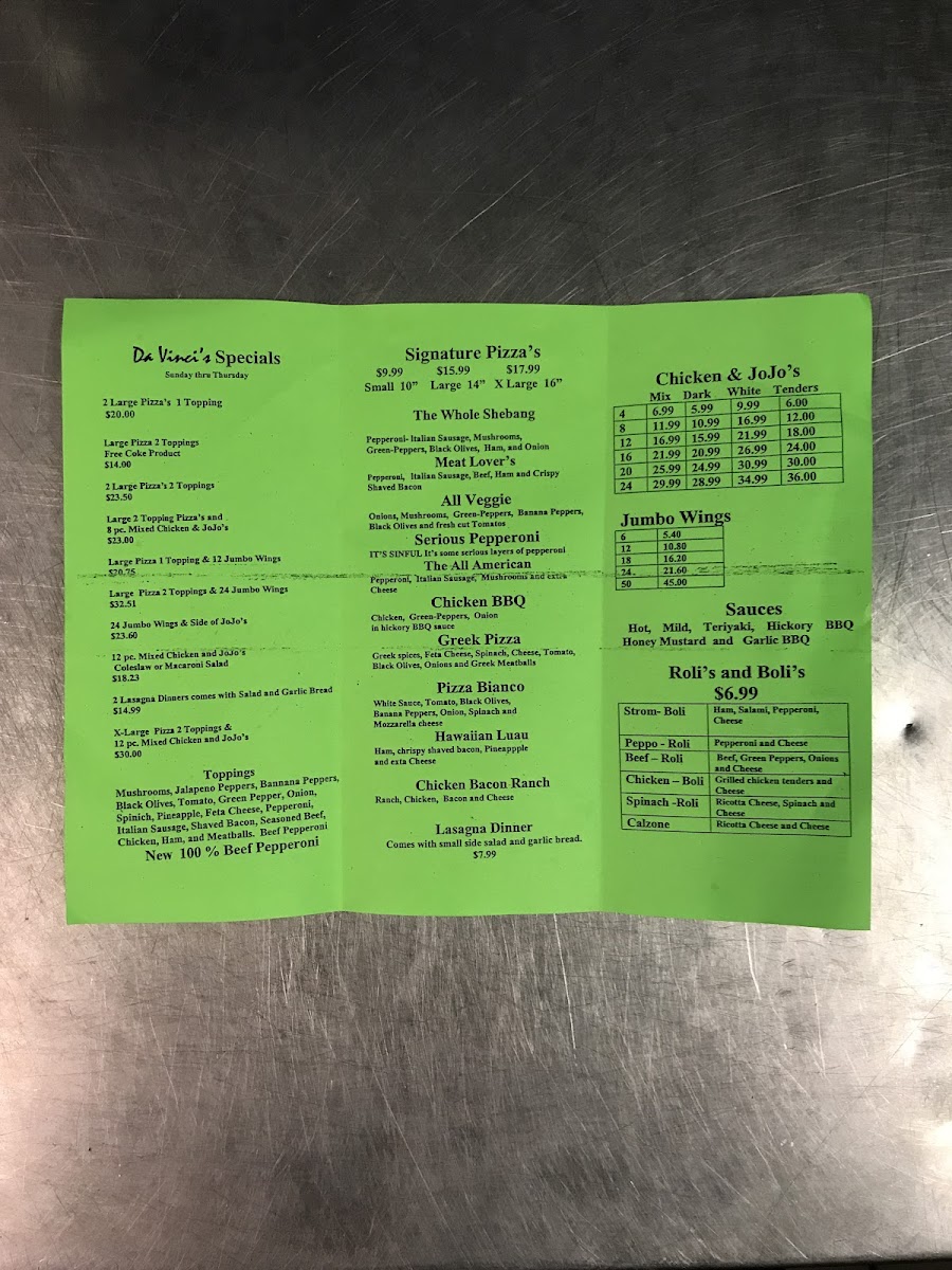 Welcome to Davinci’s - Akron, a culinary gem located at 374 S Main St, Akron, OH. This restaurant showcases a menu brimming with mouthwatering options that cater to diverse cravings. The wings, a standout item, are offered in various counts, from 6 to 50, making them perfect for sharing or a hearty solo indulgence. Additionally, their refreshing drink selections, including Dasani and classic Coke, complement the meal beautifully.